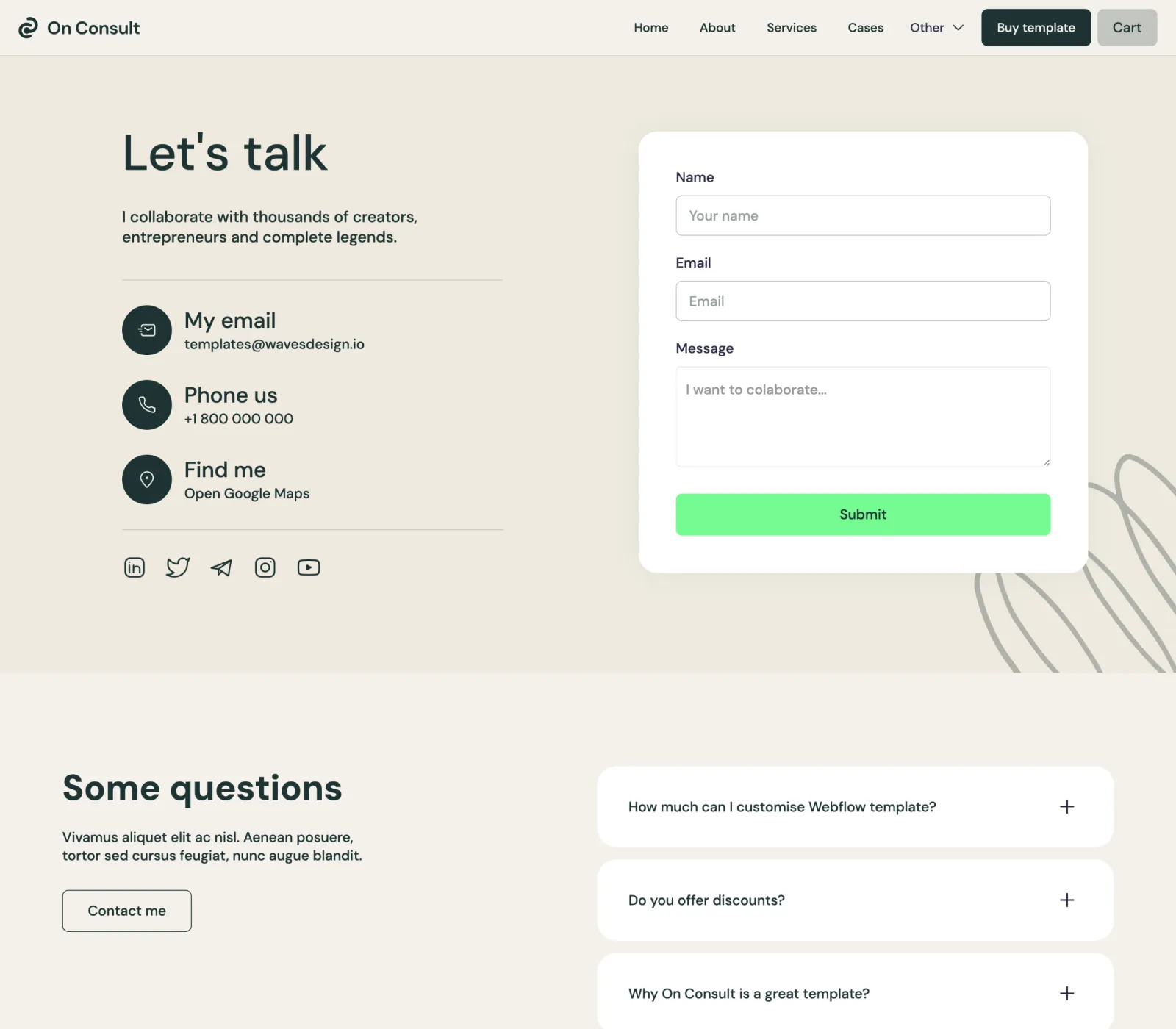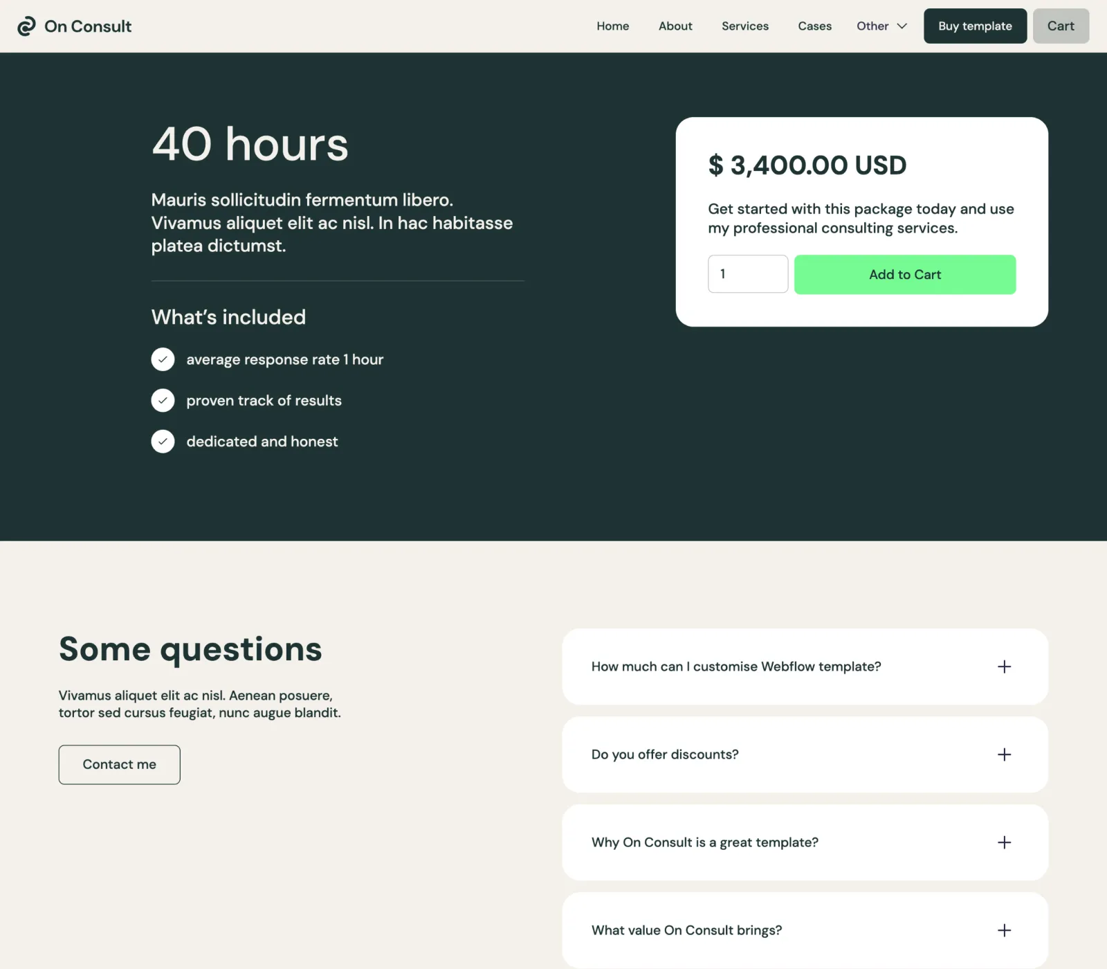 Consult Me includes a blog, services and case studies collections that are made on the powerful Webflow CMS. This will let you add new content extremely easily.