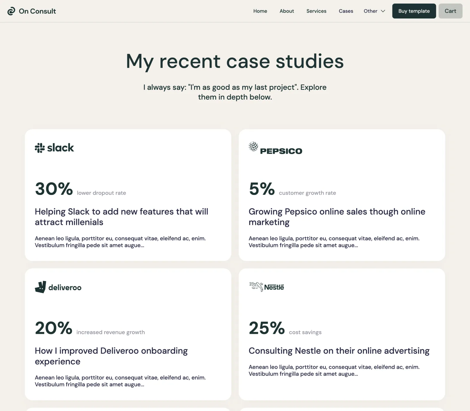 Yes, we know... it's easy to say it, but that's the fact. We did put a lot of thought into the template. On Consult was designed by an award-winning designer. Layouts you will find in our template are custom made to fit the industry after carefully made research.